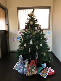 ツリーの前に置ききれないくらいたくさんのプレゼントです