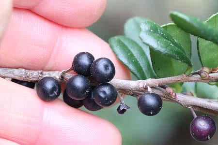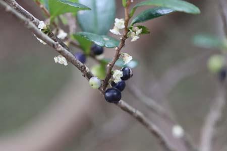 果実は、翌年に黒紫色に熟すために、花と果実を同時に見ることも出来ます。