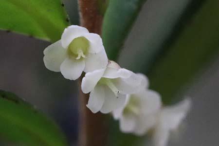 そう、ハマヒサカキは、雌雄別株で雌株には雄しべが退化した雌花が、雄株には雌しべが退化した雄花が咲くことにきがつきました。