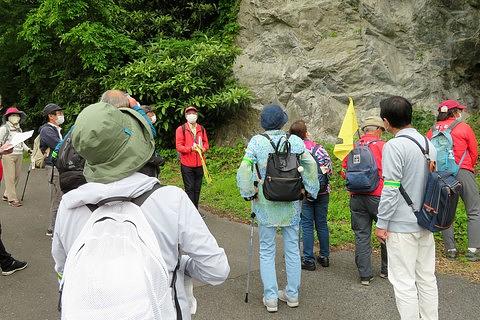 五軒茶屋ができた謂れを聞きさらに進み、石灰岩洞穴の前で説明を受けました。