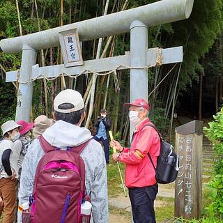 予定通りJR石部駅に集まり、駅前広場でガイドメンバーのお話を聞き、山登り(日向山)12人、平地(法界寺・地蔵院)8人コースに分かれました。