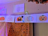 先週子供さんたちが描いたJack-O'-Lantern(ジャックオーランタン)を教室に飾りました