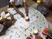 ビニール袋にそれぞれお気に入りの絵を描いたり、袋のなかにいろんな色のセロファンを入れたり、袋の外に折り紙やセロファンを張り付けたり。。。