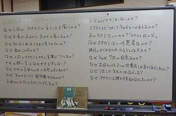 お話に対する疑問を出し合いました。いろんな疑問が次々に出てきました。