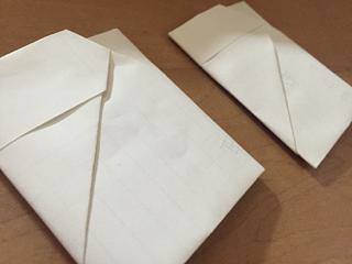 レポート用紙のポチ袋…代用感がハンパない 中に気持ちばかりのお小遣いと一言メッセージだけかいて