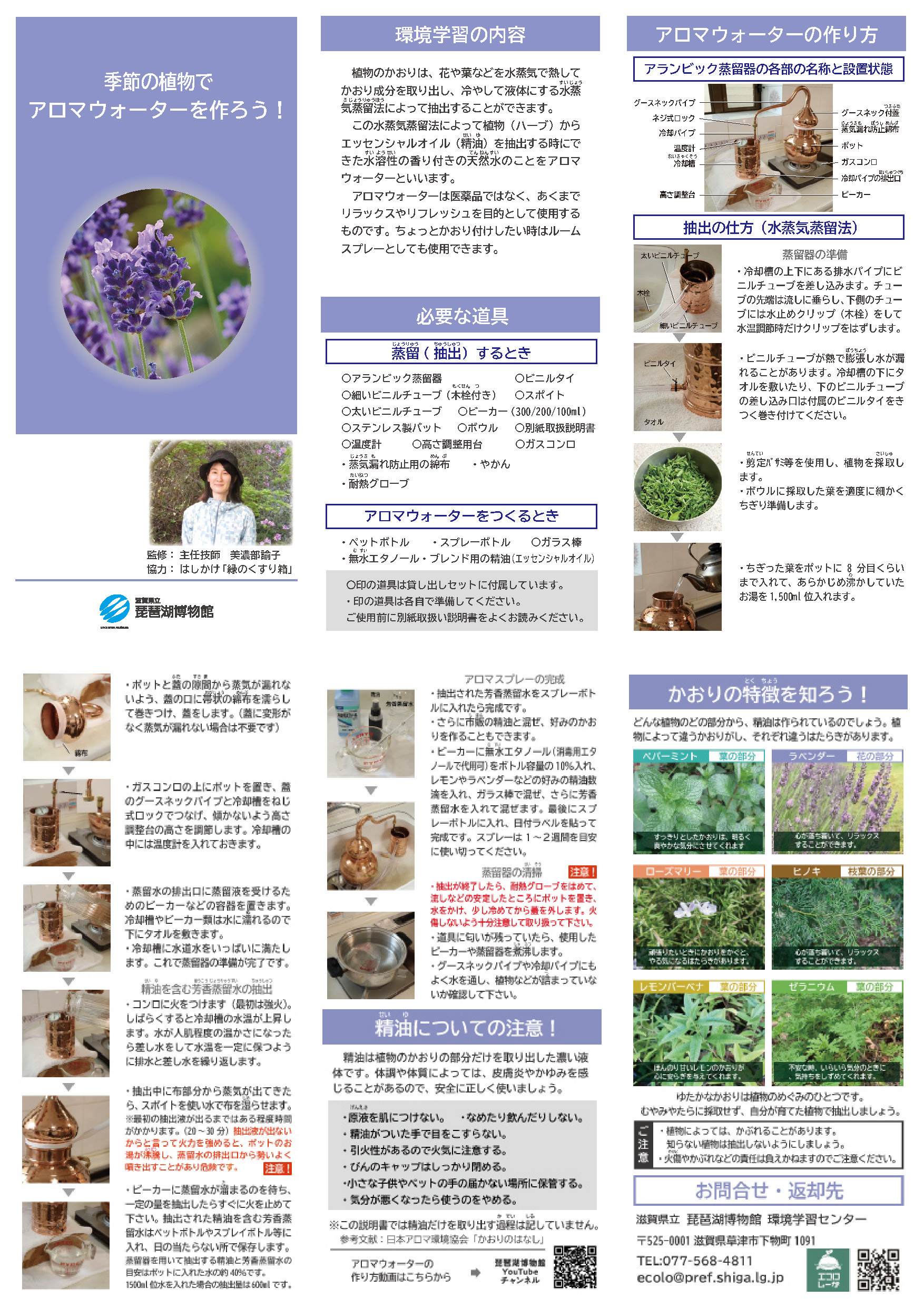 アロマウォーターを作ろう!・・・このリーフレットと「アロマウォーター作りセット 」を借りればすぐできるよ!