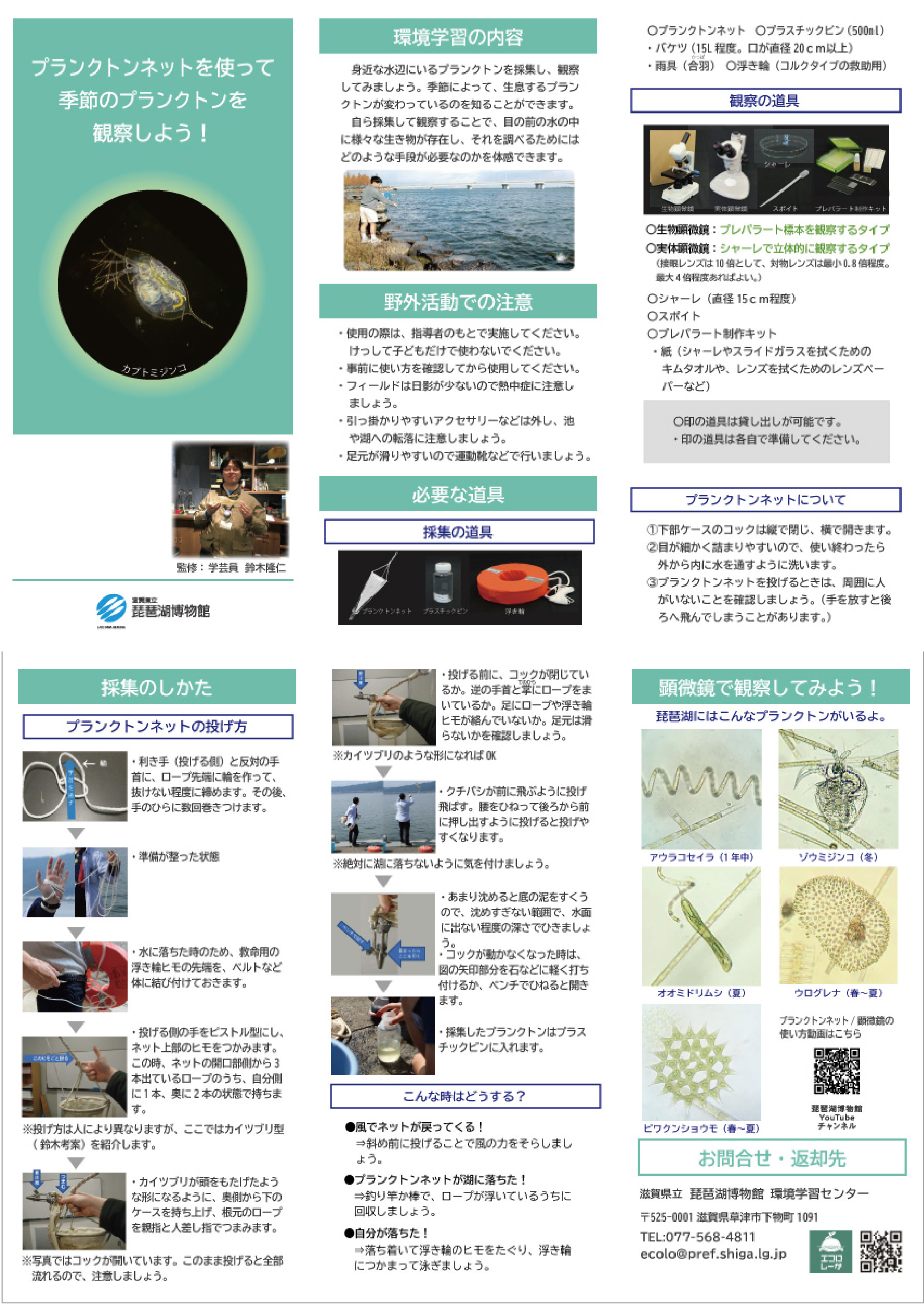 季節のプランクトンを観察しよう!・・・このリーフレットと「プランクトンネット」「実体顕微鏡セット」「生物顕微鏡セット 」を借りればすぐできるよ!