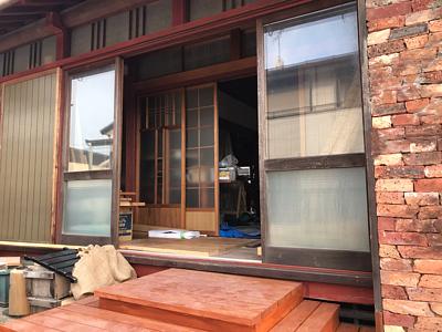 空き家だったお家の縁側にアンティークドア