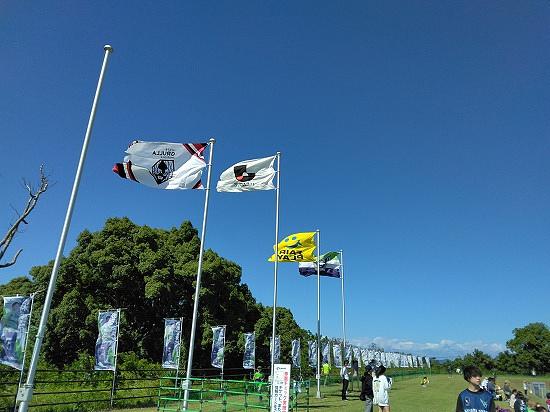 風が強めですが 秋晴れのスタジアム
