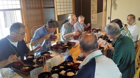 〇運よく、6月26日まで「日野祭 850年の歴史」展が開催中<!-- PARAGRAPH_BREAK -->いよいよ、お楽しみの<b>「郷土料理」</b>をいただく時間です。<br>このお料理は、日野の町とお料理が大好きなおばちゃん達が運営する「日野の伝統料理を継承する会」の皆様のボランティア活動で、心くばりが至る所に感じられました。<br><img src=