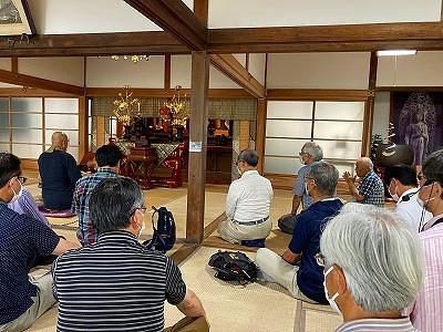 西明寺で 中央に僧侶にも入っていただき <合掌>