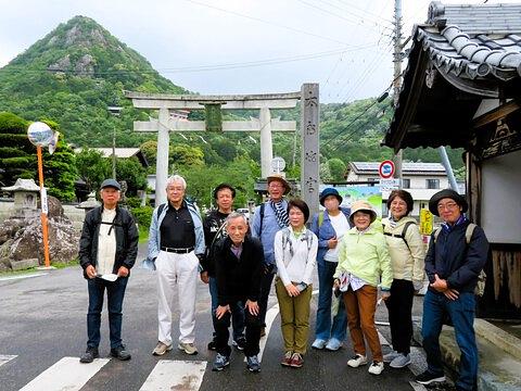 全員揃って太郎坊宮の二の鳥居のところで、ここで集合写真です。