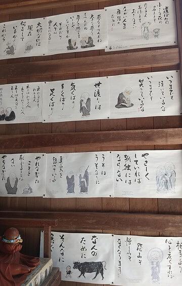 七福神が見守ってくれている女坂を通って、お参りの方が、お百度詣り等によって願掛けを行う建物一願成就社(願かけ殿)へ。 ここの天狗のお面がいいお顔をされているとのことでした。