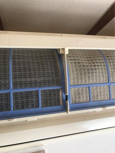左側がクリーニングして綺麗になったフィルター