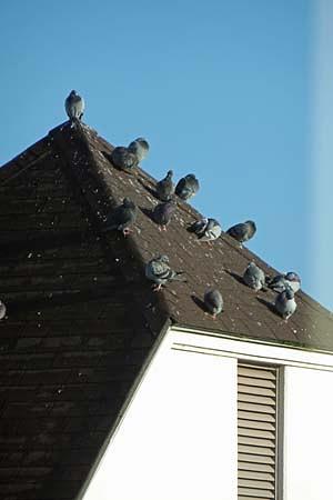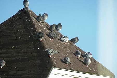 鳩も日の当たる傾斜が急な三角屋根に止まり体を温めていました。鳩も寒かったのでしょうね。