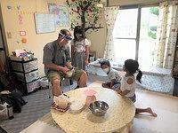 歌(The itsy bitsy spider)を歌ってから、さっそくお団子つくり開始です