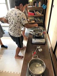 沸騰したお湯にお団子を入れて、浮いてきたらさらに1分ゆでて、冷水にとります