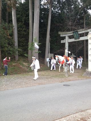 地区ごとに馬に乗るのですが、過疎化地域の悲しいところ。参加できる地域がだんだん減ってきて、今年は4~5頭ほどでした。昔はもっといたんですけどね~