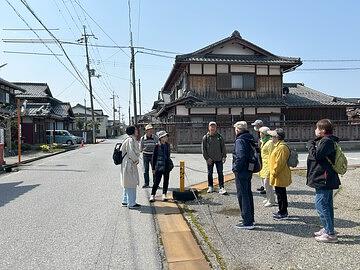 岩永会員から宿場町の歴史話に耳を傾ける