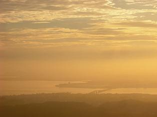 午前5時、琵琶湖大橋気温8℃、風速1メートル。