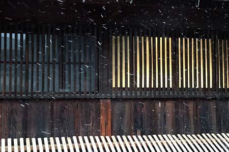 建物は、大倉記念館に降る雪です。