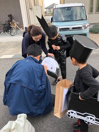 それからお手伝いの中学生!部活のない子となると受験生が頼りになりますが、今年も教室の生徒さんたちがたくさん友達を集めてくれました!うちの息子たちや友達も手伝ってくれて、子どもたちの着替え、マップ貼り、写真撮影、お菓子配り、それから安全に歩けるように見守ってくれました