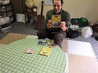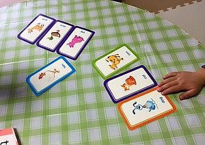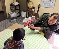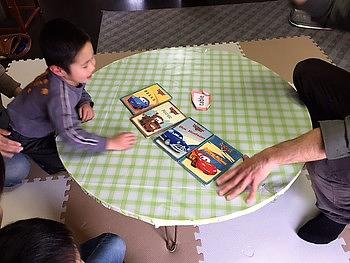 歌を歌いながらテーブルのまわりをまわるゲームをしたり、手遊びをしたり、絵本を読んでもらったり、毎回いろんな楽しいレッスンをしています