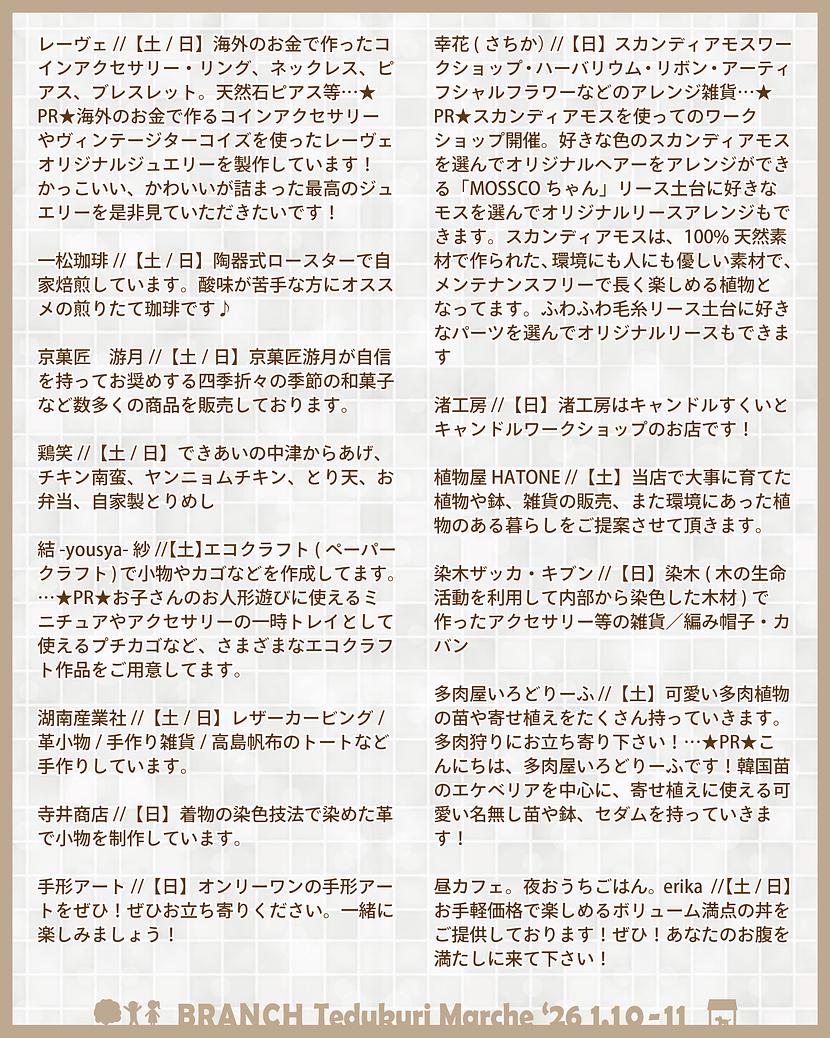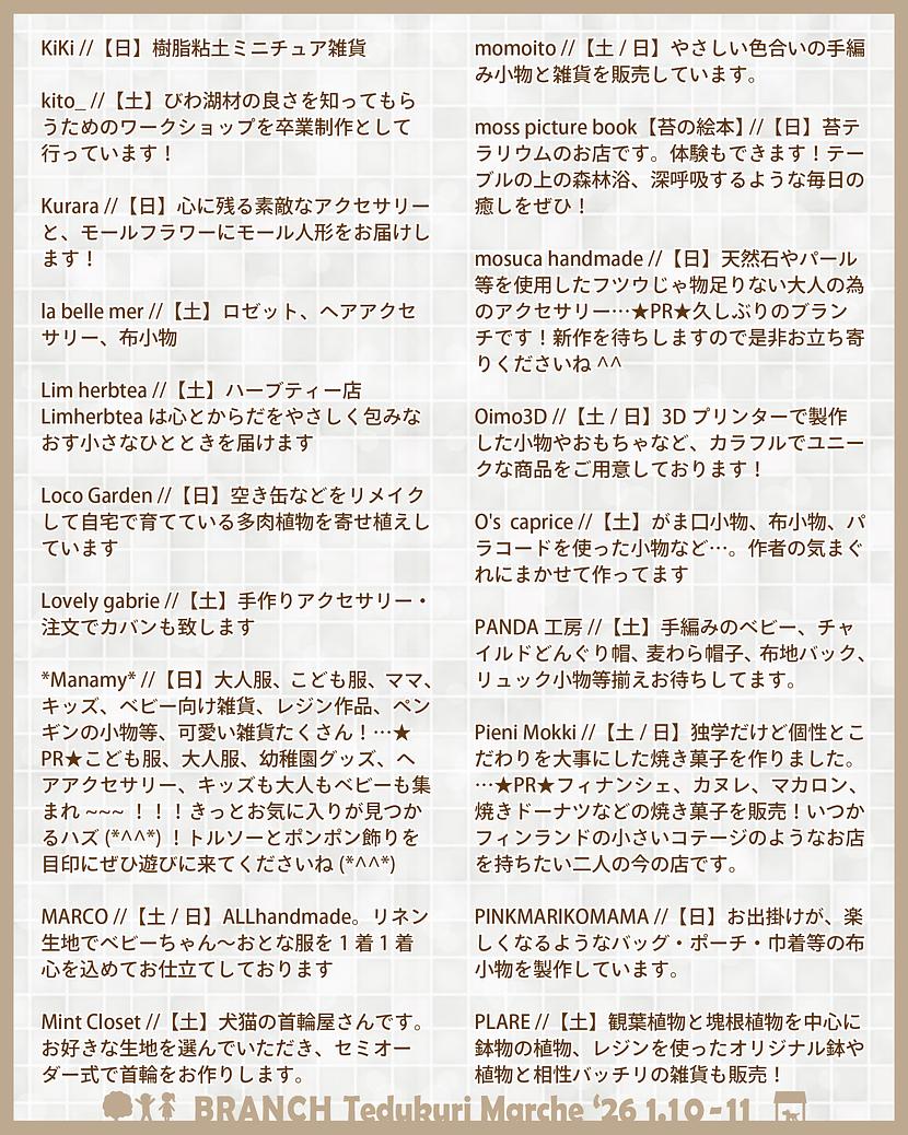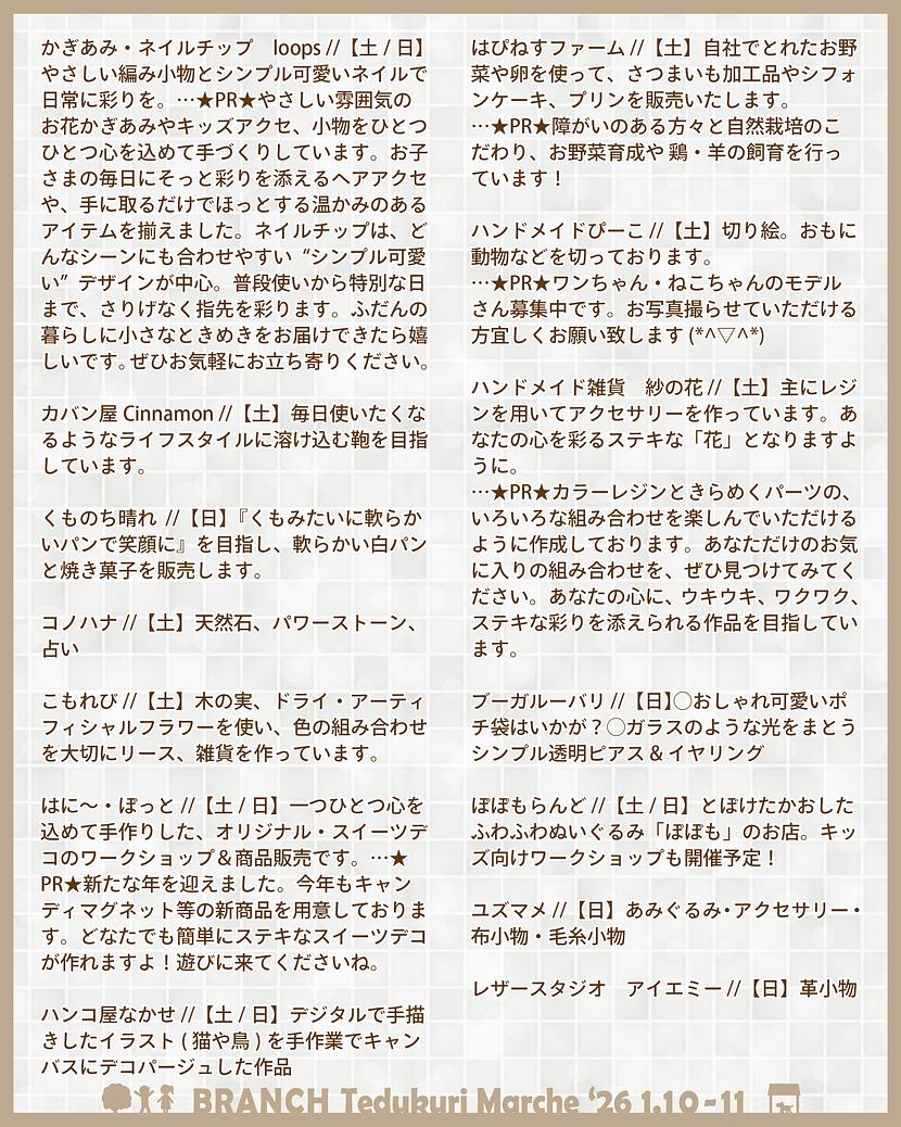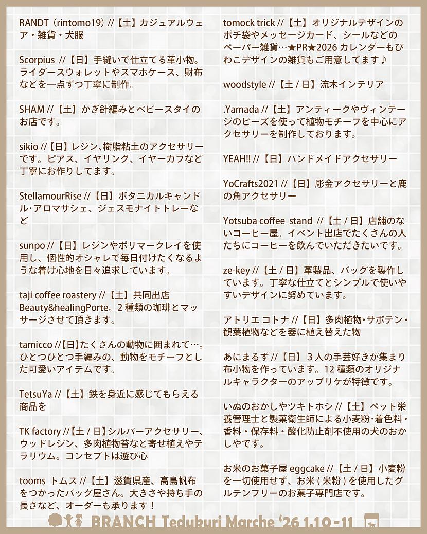 10日(土)55店・11日(日)55店の予定。2日間計86組で開催します。